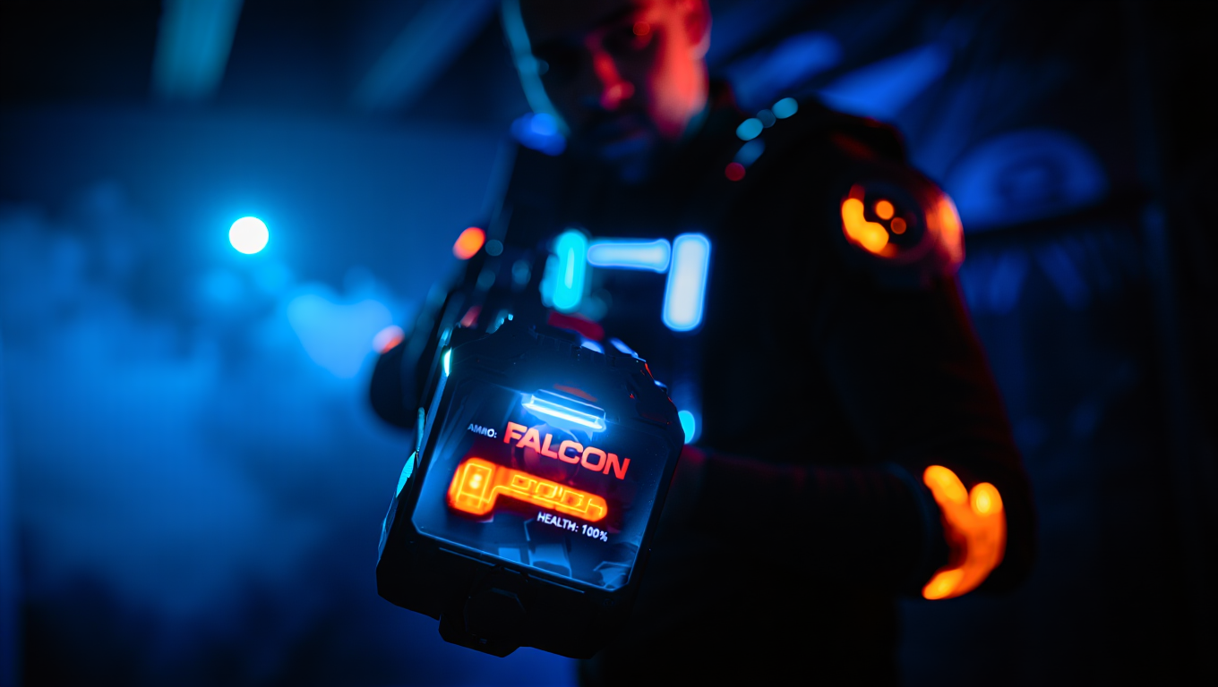 Каждый бластер FALCON имеет ограниченное количество выстрелов — обычно от 30 до 100. Благодаря цветному дисплею на автомате вы всегда видите, сколько патронов осталось, ваше текущее состояние здоровья и другие важные показатели. Импульсная имитация отдачи делает каждый выстрел максимально реалистичным — вы чувствуете, как бластер отзывается в руках.